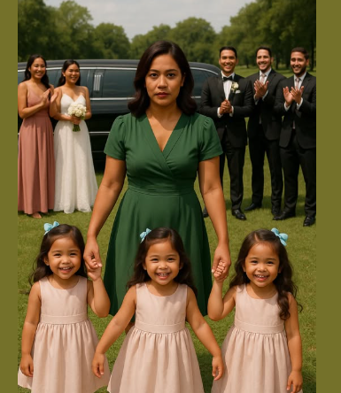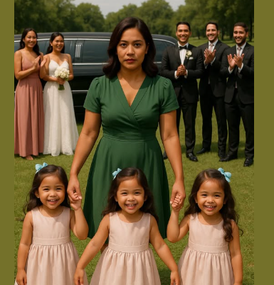Hindi nag-atubili si Emma. Lumakad siya pasulong, buong pagmamalaki na hinawakan ang mga kamay ng kanyang mga anak. Ang tawa ng triplets ay napuno ng hangin, ang kanilang kawalang-muwang ay natutunaw ang mga puso habang nakatingin sila sa paligid nang mausisa. Hindi maiwasang humanga ang mga bisita sa mga batang babae, na tila perpektong sumasalamin sa katapangan ng kanilang ina. Sa mga sandaling iyon, ang dignidad ni Emma ay nag-eclipse sa mga diamante ng nobya.