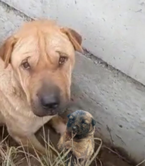At a forgotten and desolate construction site, amidst piles of rubble and scattered debris, there was a mother dog named Marley who clung to life in the only way she knew—by fiercely protecting her last surviving puppy. She had dug a shallow hole in the cold, hard dirt, wrapping her frail, malnourished body around her baby, shielding it from the harsh world that had been so cruel to them. Marley was painfully thin, her ribs protruding through her patchy fur, every bone visible under her skin. Her body trembled uncontrollably, worn down by days of hunger, exhaustion, and fear. But even as her strength faded, her determination remained unbroken. Her tired eyes, though clouded by suffering, never stopped watching over her baby. In those eyes burned a fire—a fierce love only a mother could know, a desperation to protect the only family she had left.