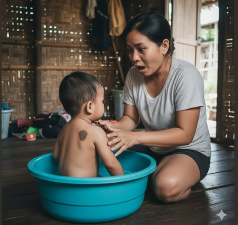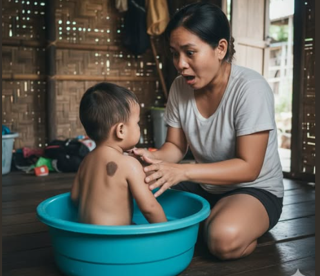 Pagkatapos ay marahan niyang ipinihit ang sanggol upang hugasan ang likod nito—at sa mismong sandaling iyon, tila huminto ang oras sa paligid ni Hương. Ang mundo ay naging katahimikan, at ang lahat ng tunog ay naglaho. Sa ilalim ng kaliwang balikat ng bata, lumitaw ang isang mapusyaw na kayumangging nunal, malinaw ang hugis—isang maliit na arko, eksaktong porma na hindi niya maaaring makalimutan. Hindi man ito kalakihan, ngunit sapat upang mapatigil siya sa paghinga, tila nanigas ang buong katawan ni Hương.