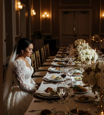 Si Mara, nakaupo pa rin sa mesa, suot ang puting gown, nakatitig sa pinto na hindi bumubukas.