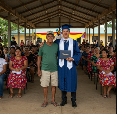 Pero nung araw na yun, nahihiya akong aminin na kinakabahan ako. Sa napakaraming magulang na nakasuot ng damit at damit, may mga kotse at magagandang sapatos, dumating ang aking ama, hubad ang sapin. Hindi dahil gusto niya, kundi dahil nakasanayan na niya. Sanay na siya sa lupa, sanay na siya sa putik. Sa katunayan, wala siyang tamang sapatos na isuot. Ang tanging dala niya ay ang kanyang manipis na katawan, isang kupas na polo shirt, at isang ngiti na puno ng pagmamalaki.